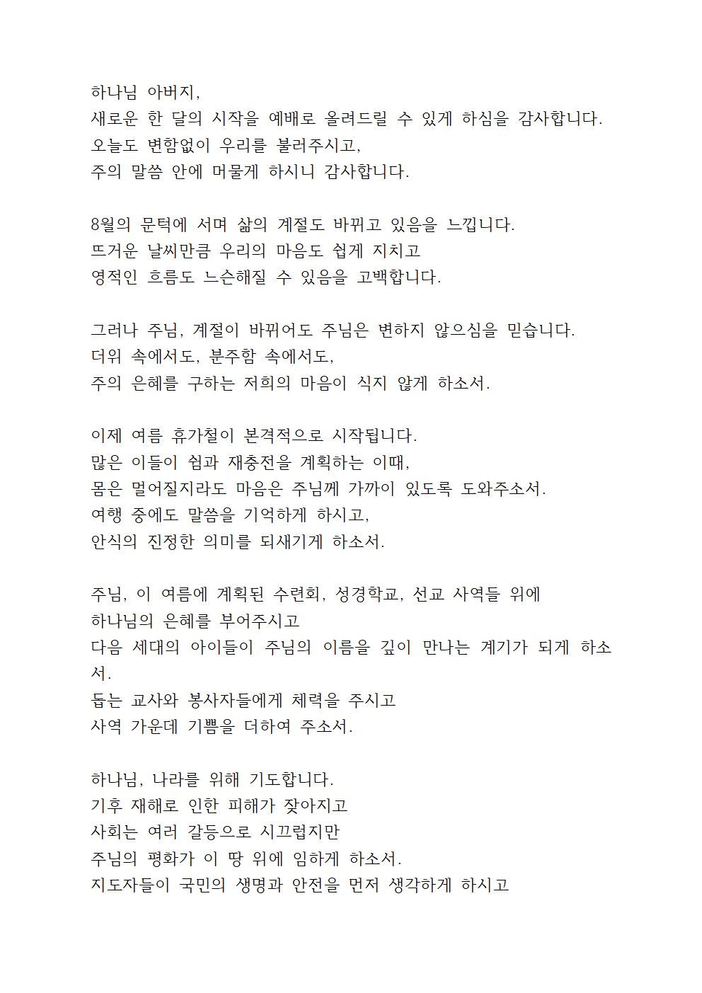 8월 첫째주 대표기도문 (pdf 파일)